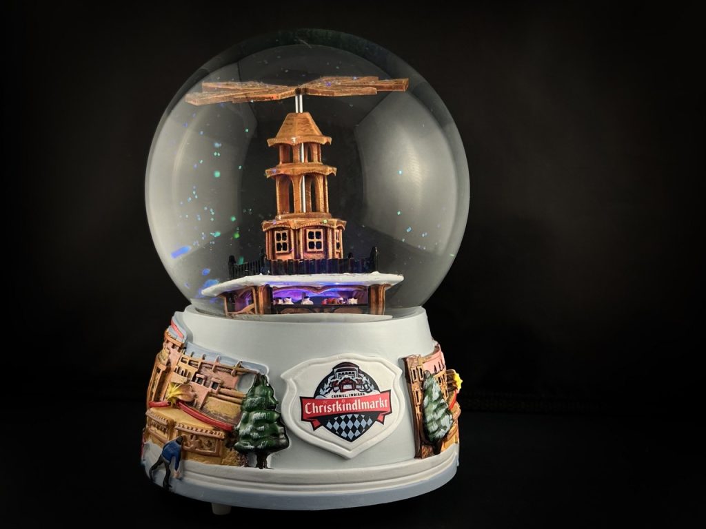 We are also extremely proud to produce smaller quantities of 100-400 custom snow globes, with production in Chicago, Illinois. Production in the USA offers 100mm and 120mm size globes, with a classic circular base option. Request your quote today for either production method.