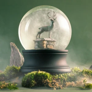 We modelled the stag painstakingly in both the sculpting work and the hand painted finish – recreating the mossy, coppery verdigris of the iconic statue, along with the muted, heathery and mossy surrounds.