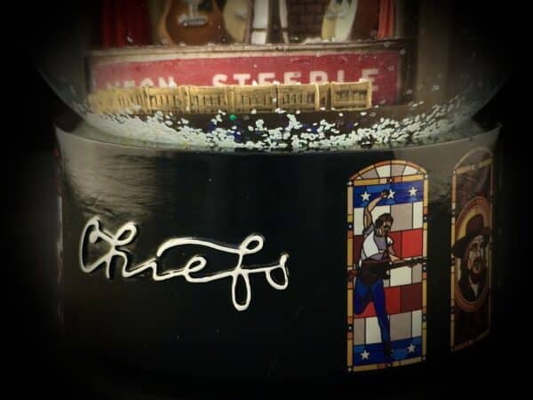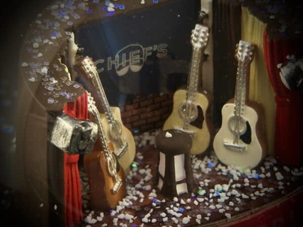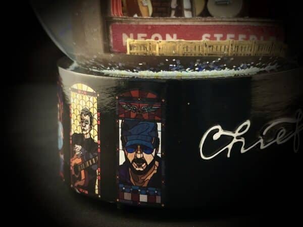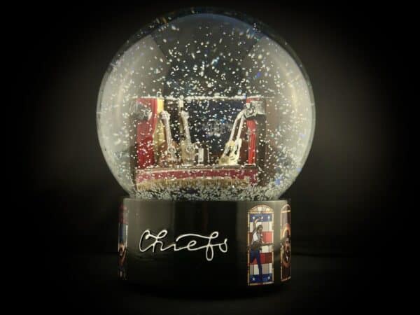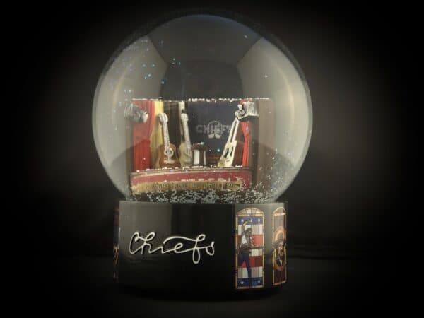 This custom snow globe was created for Chief’s, the six-story bar, restaurant, and live music venue in downtown Nashville, founded by country music star Eric Church. Chief’s celebrates Church’s musical legacy with an immersive entertainment experience that includes a ticketed music venue, broadcast studio, and unique dĂ©cor throughout the space. We captured the energy of the venue by featuring a stage and guitars at the heart of the globe’s design, reflecting the live music culture that defines Chief’s. Every sculpted detail—from instrument shapes to stage elements—was crafted to feel dynamic and authentic. Premium materials and thoughtful texturing give the piece a sense of depth and presence. With swirling snow adding movement, the globe evokes the sense of excitement and performance that fans experience at Chief’s. The finished piece is a tribute to live music, Nashville’s vibrant scene, and Eric Church’s passion for connecting with audiences