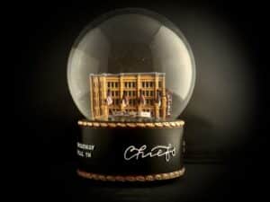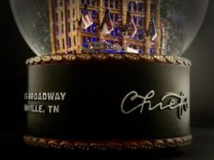 When country music superstar Eric Church asked us to create a custom snow globe for Chief’s we knew we needed to capture all the energy and grandeur of this remarkable establishment. Chief’s isn’t just another Broadway destination – it’s a love letter to music, food, and Southern hospitality. Spanning an impressive 22,000 square feet across six floors, the venue houses everything from a remarkable BBQ restaurant to Nashville’s largest rooftop bar, with each level offering its own unique experience. At the heart of it all is the intimate “Chief’s Stage,” a two-story ticketed venue that brings fans closer than ever to their favorite performers.