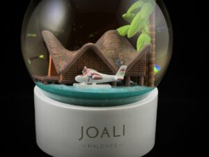 The Queen was delighted to create these enchanting snow globes for Joali Resort in the Maldives – our first USA-made project to ship internationally. Each globe captures the resort’s luxurious seaplane landing area, where guests begin their journey into paradise.