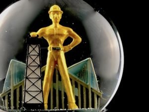 This fabulous new snow globe has been produced as a second design for the equally fabulous Tulsa, Oklahoma gift store, Ida Red General Store..Having already wowed her loyal customers with the original Tulsa skyline snow globe, Angelene decided to add a new design to her store, featuring the very iconic Tulsa Golden Driller statue in front of the Tulsa Expo Center.